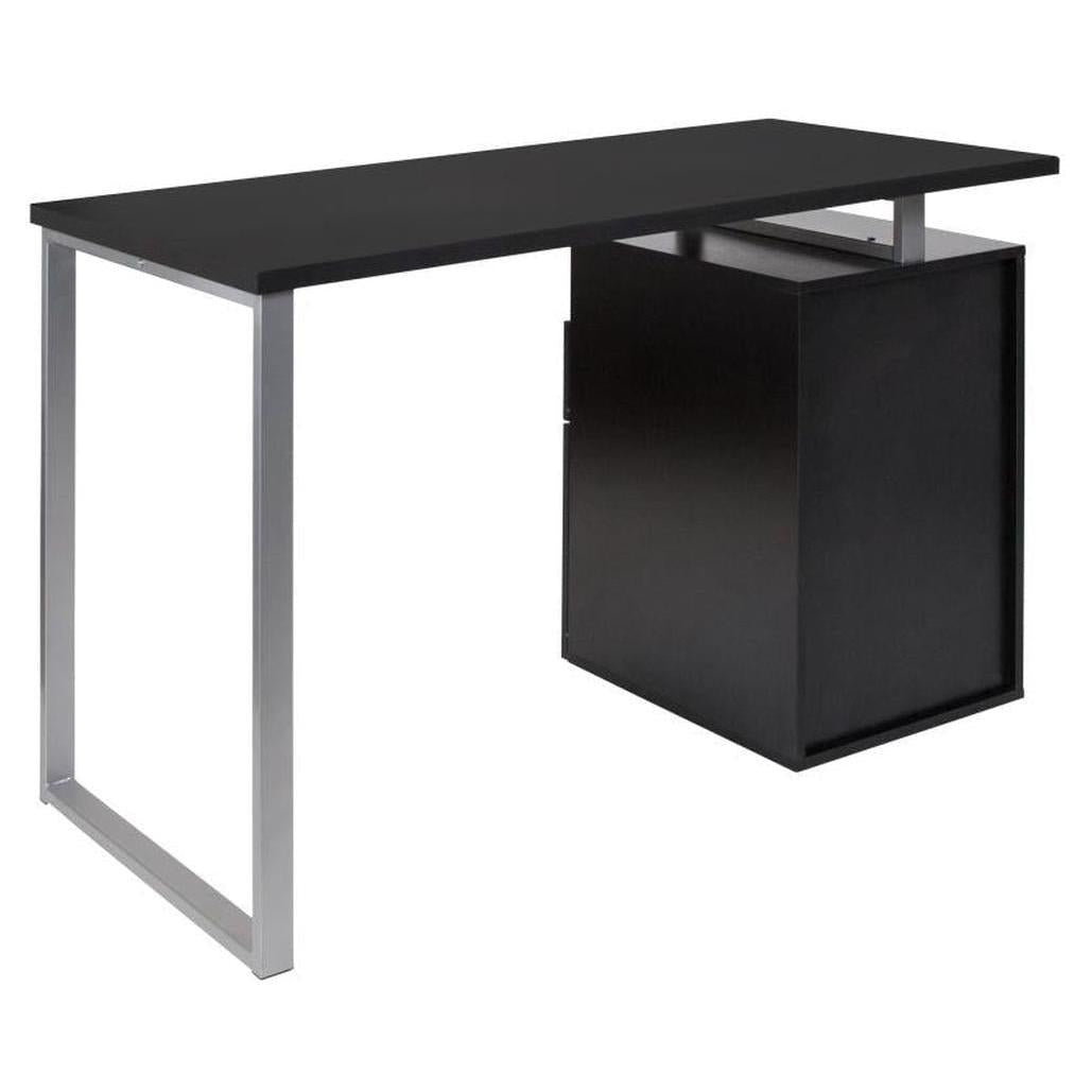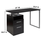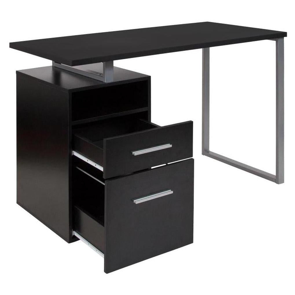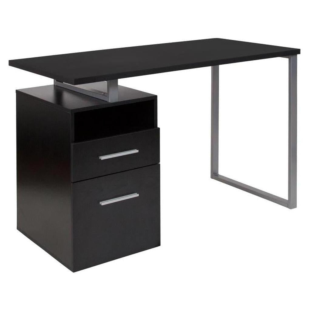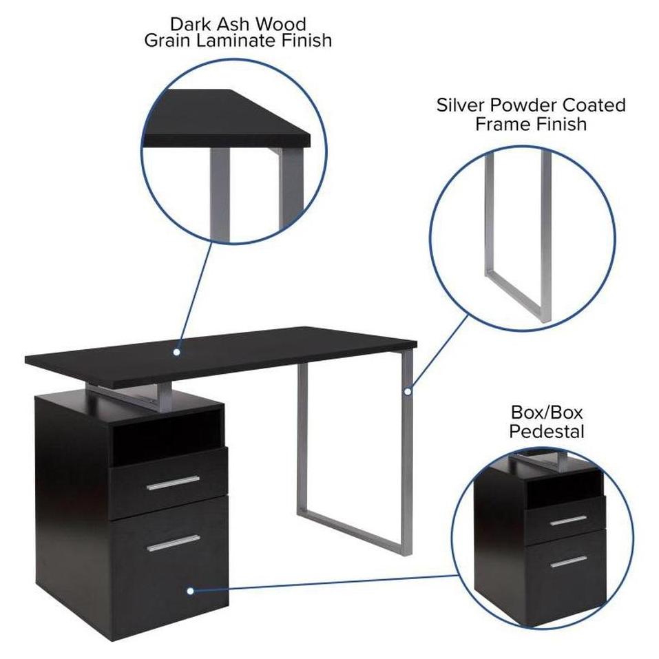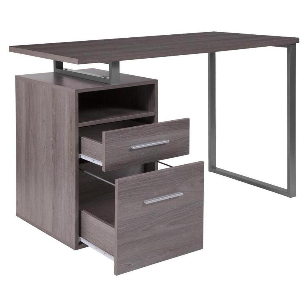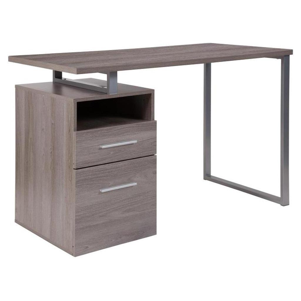 - Harwood Ash Wood Grain Finish Computer Desk with Two Drawers and Silver Metal Frame