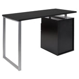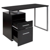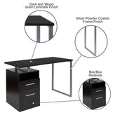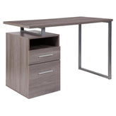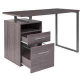 Harwood Ash Wood Grain Finish Computer Desk with Two Drawers and Silver Metal Frame