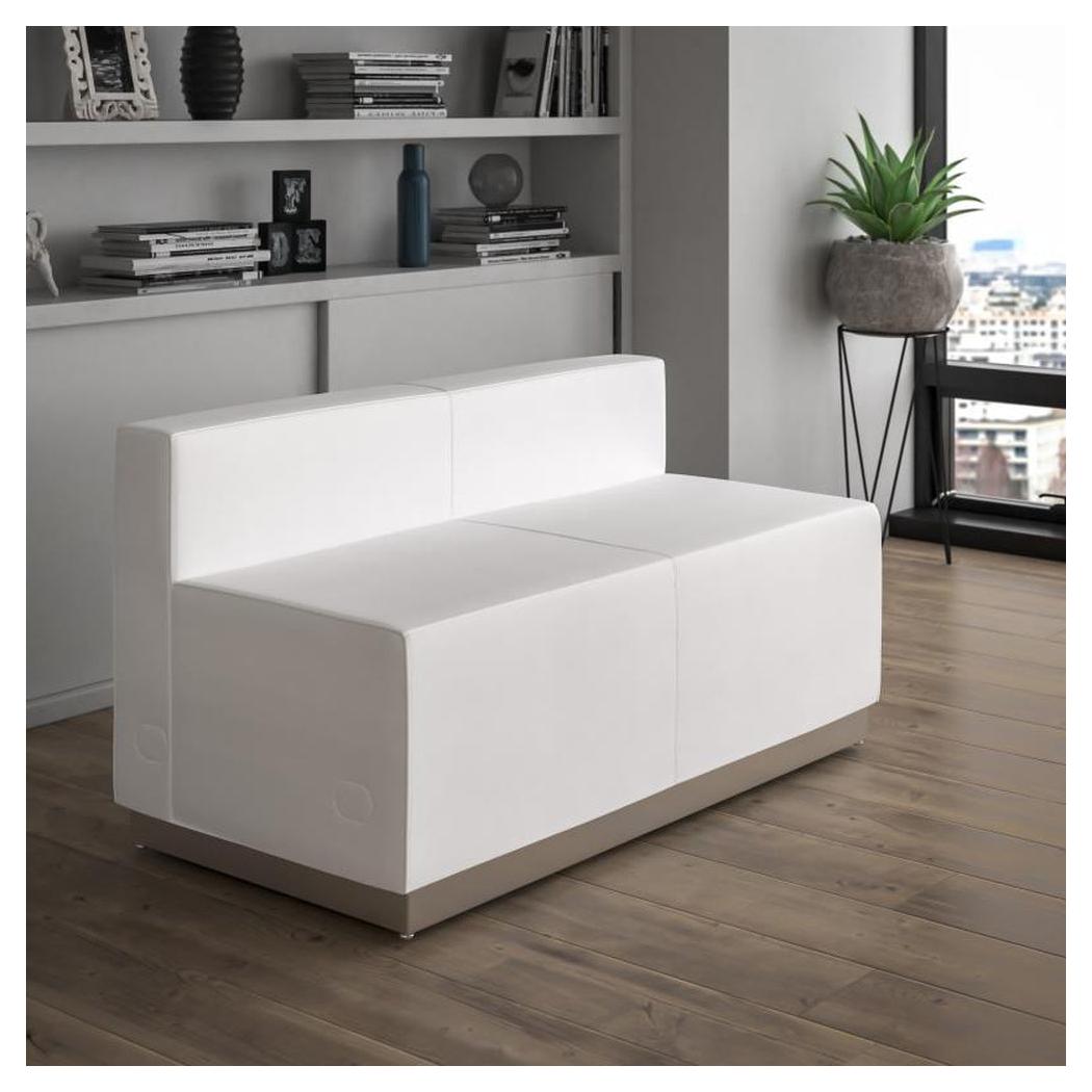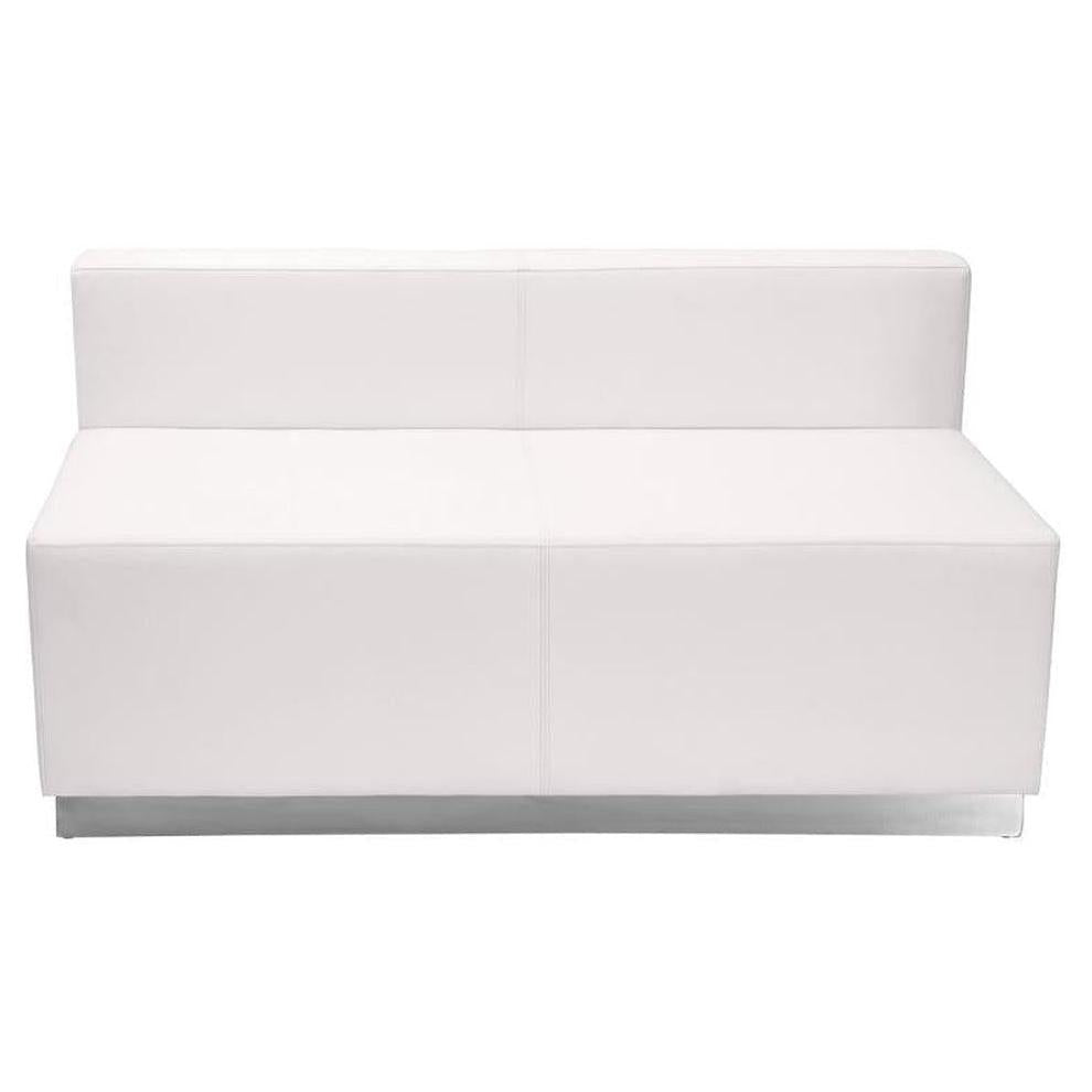 - HERCULES Alon Series Melrose White LeatherSoft Loveseat with Brushed Stainless Steel Base