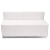 HERCULES Alon Series Melrose White LeatherSoft Loveseat with Brushed Stainless Steel Base