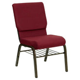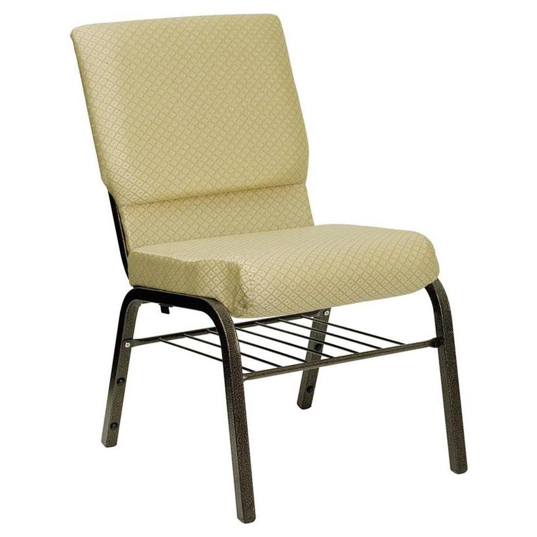 HERCULES Series 18.5''W Church Chair in Fabric with Book Rack - Gold Vein Frame