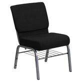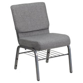 - HERCULES Series 21''W Church Chair in Fabric with Book Rack - Silver Vein Frame