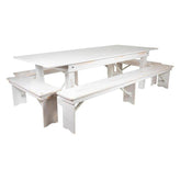 - HERCULES Series 8' x 40" Antique Rustic White Folding Farm Table and Four Bench Set