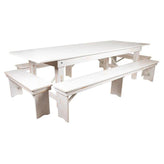 - HERCULES Series 9' x 40" Antique Rustic White Folding Farm Table and Four Bench Set