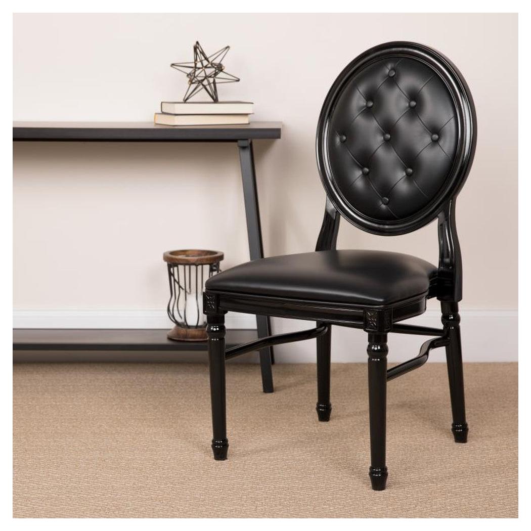 - HERCULES Series 900 lb. Capacity King Louis Chair with Tufted Back Black Vinyl Seat and Black Frame