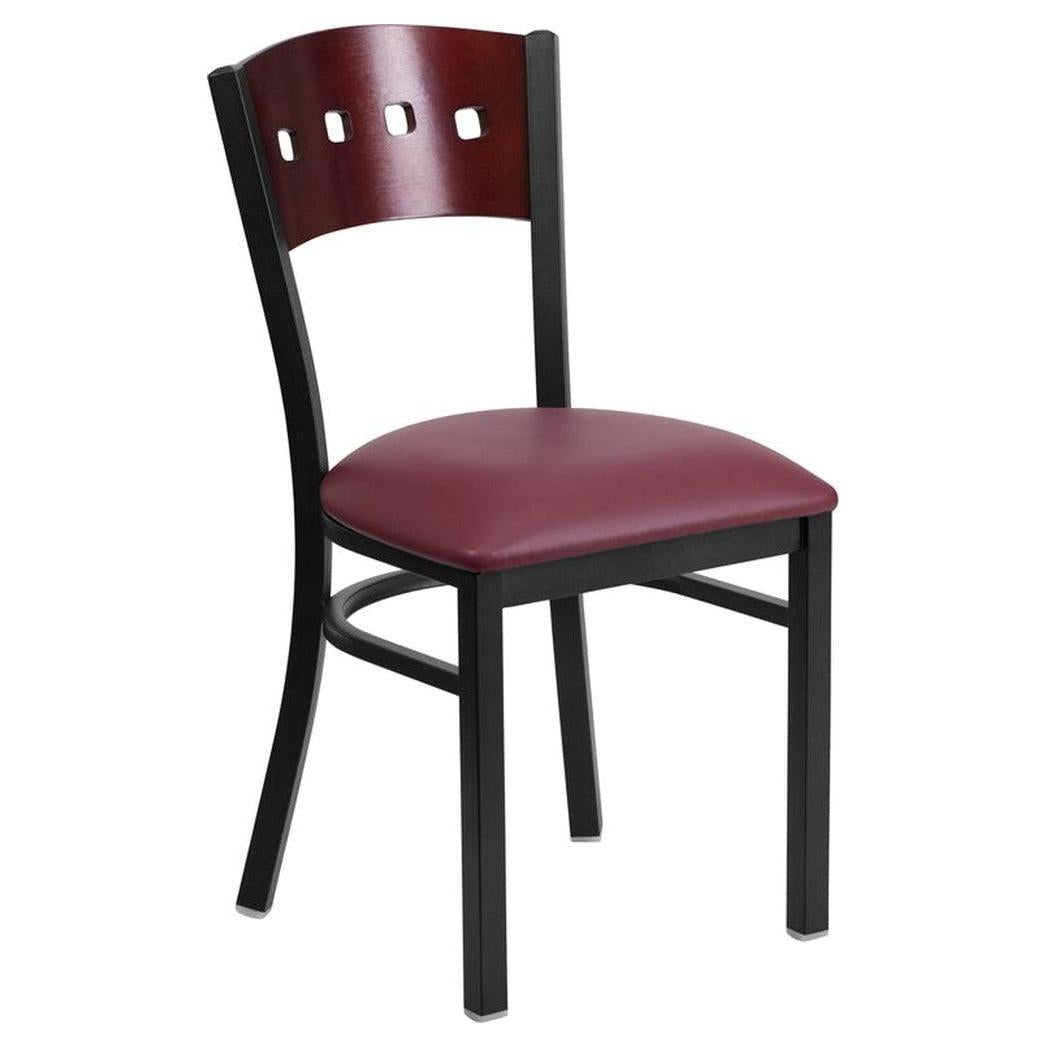 - HERCULES Series Black 4 Square Back Metal Restaurant Chair - Mahogany Wood Back