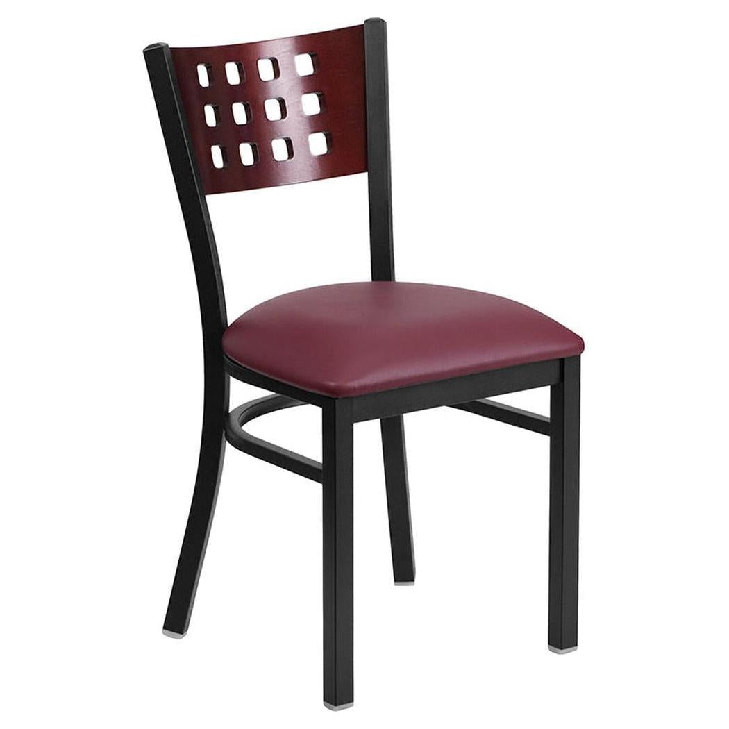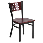- HERCULES Series Black Cutout Back Metal Restaurant Chair - Mahogany Wood Back