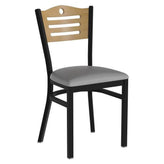 - HERCULES Series Black Slat Raised Back Metal Restaurant Chairs