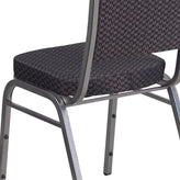 - HERCULES Series Crown Back Stacking Banquet Chair in Black Patterned Fabric - Silver Vein Frame