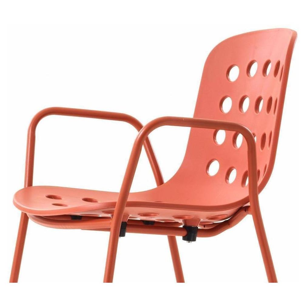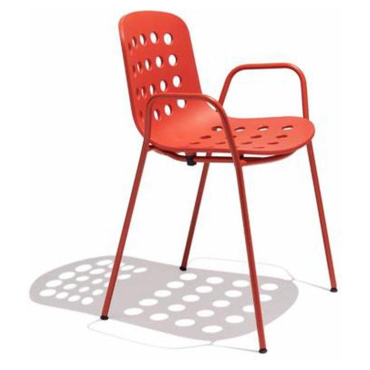 This Holi Open Shell Armchair is a commercial grade chair designed to last and look great in your restaurant. The chair works great for modern or contemporary designs. It is made of polypropylene and galvanized metal designed for the budget price point. This armchair is available in black, red terracotta, olive, and white. This product is protected by our low price guarantee and our customer satisfaction return policy.