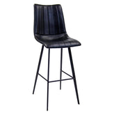 - Indoor Black Metal Bar Stool With Vertical Vinyl Seat And Back