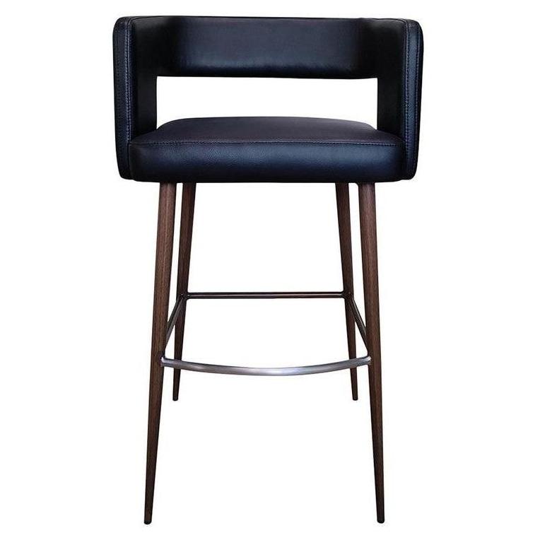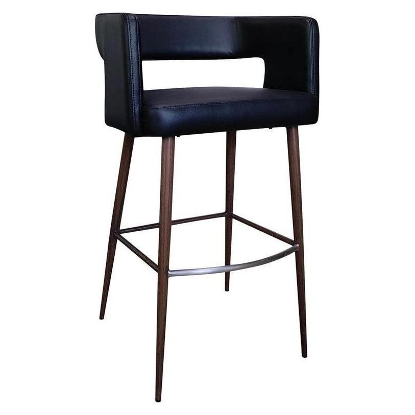 - Indoor Curved Open Back Bar Stool with Metal Frame and Black Vinyl Upholstery