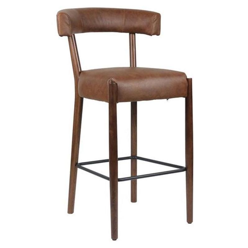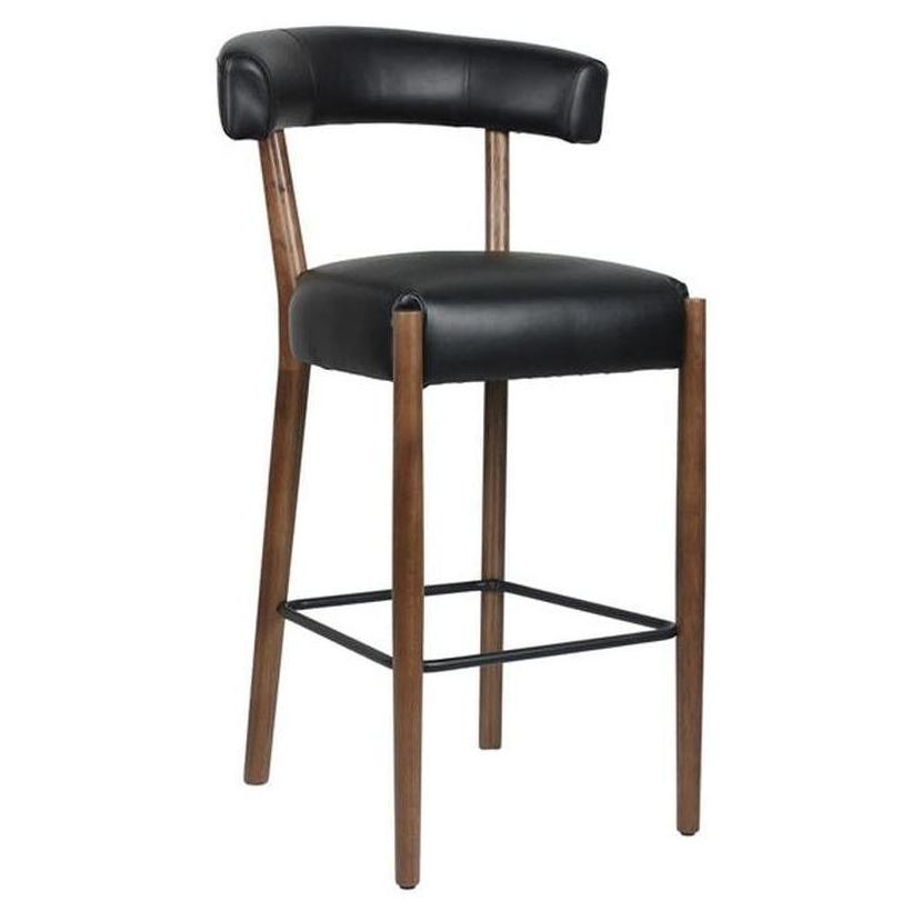 - Indoor Curved Back Upholstered Oak Wood Bar Stool