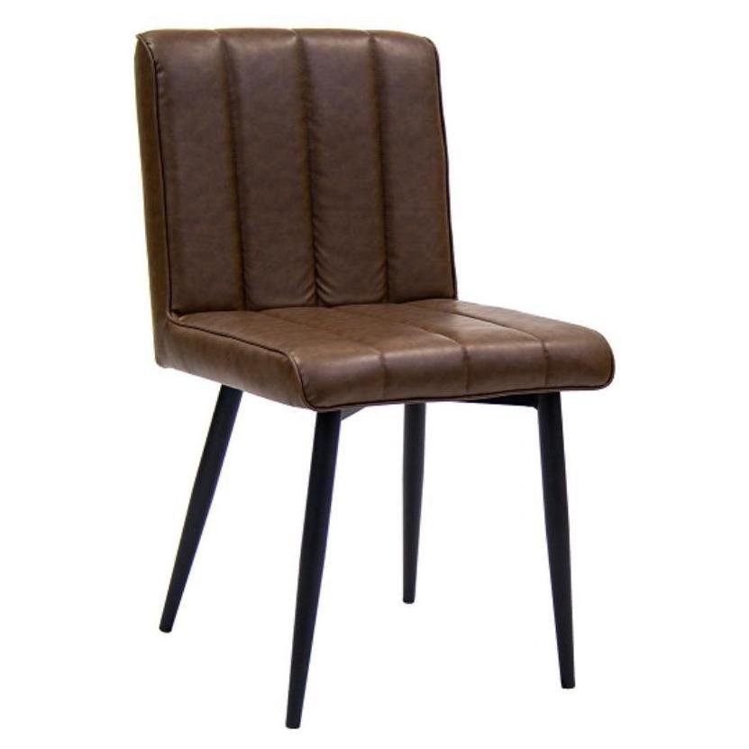 - Indoor Metal Upholstered Chair With Brown Vinyl Seat And Back