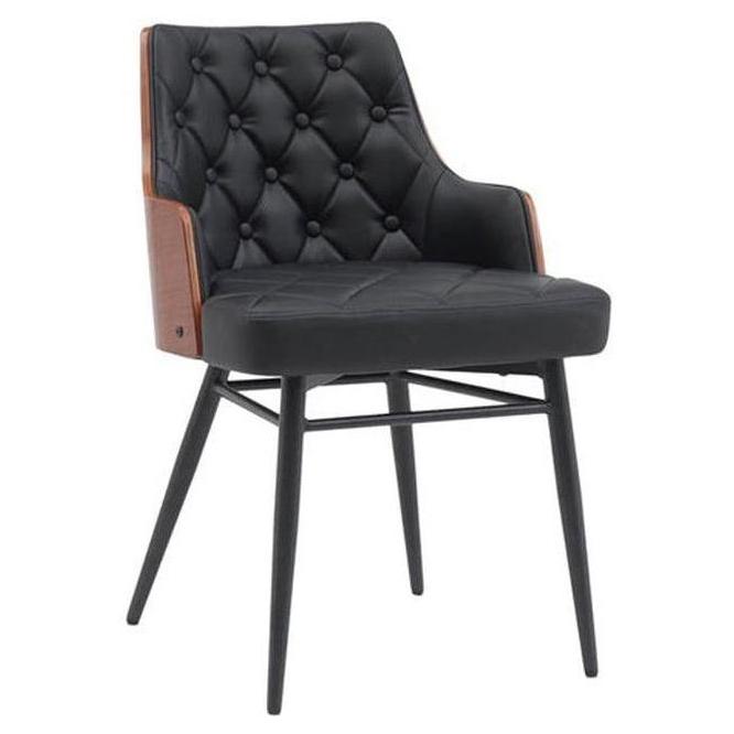Indoor Mid-Century Classic Metal Upholstered Chair with Faux Leather Upholstery and Tufted Back