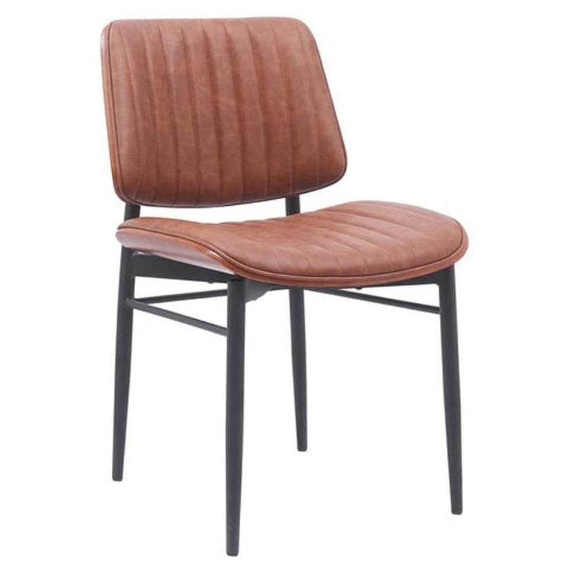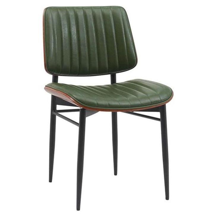 - Indoor Mid-Century Modern Metal Upholstered Chair with Vinyl Seat and Back