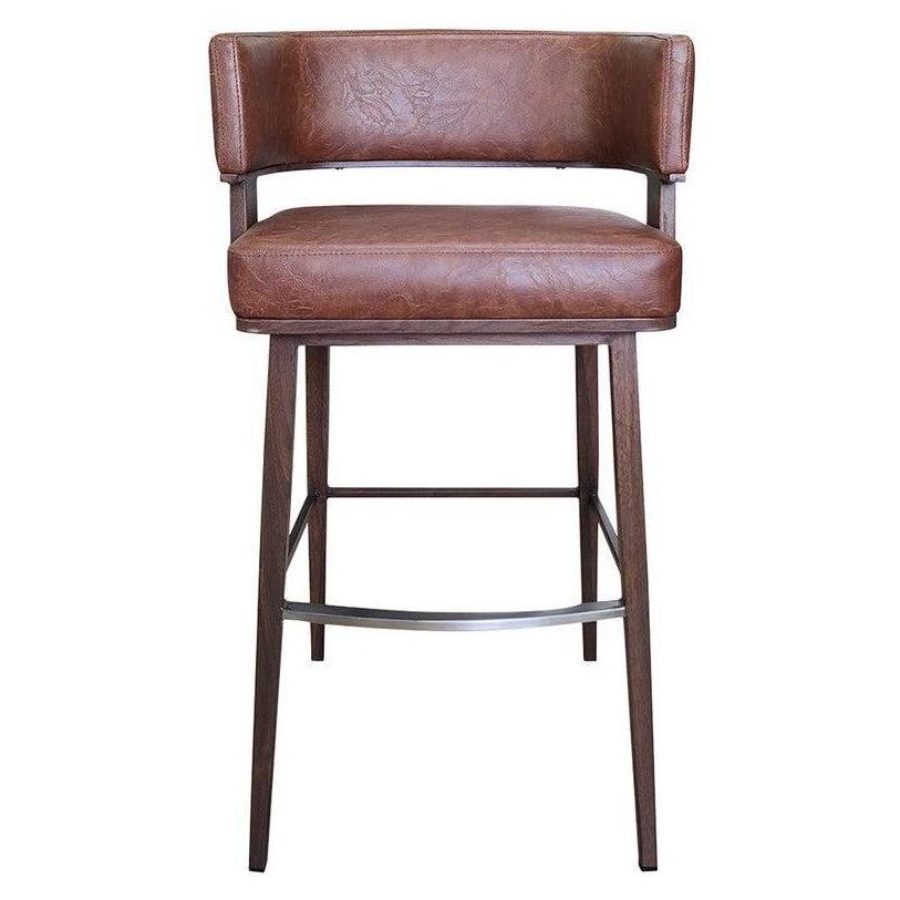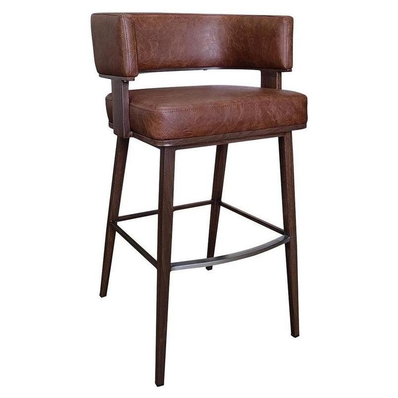 - Indoor Open Back Wood Grain Metal Framed Bar Stool with Coffee Colored Vinyl Upholstery