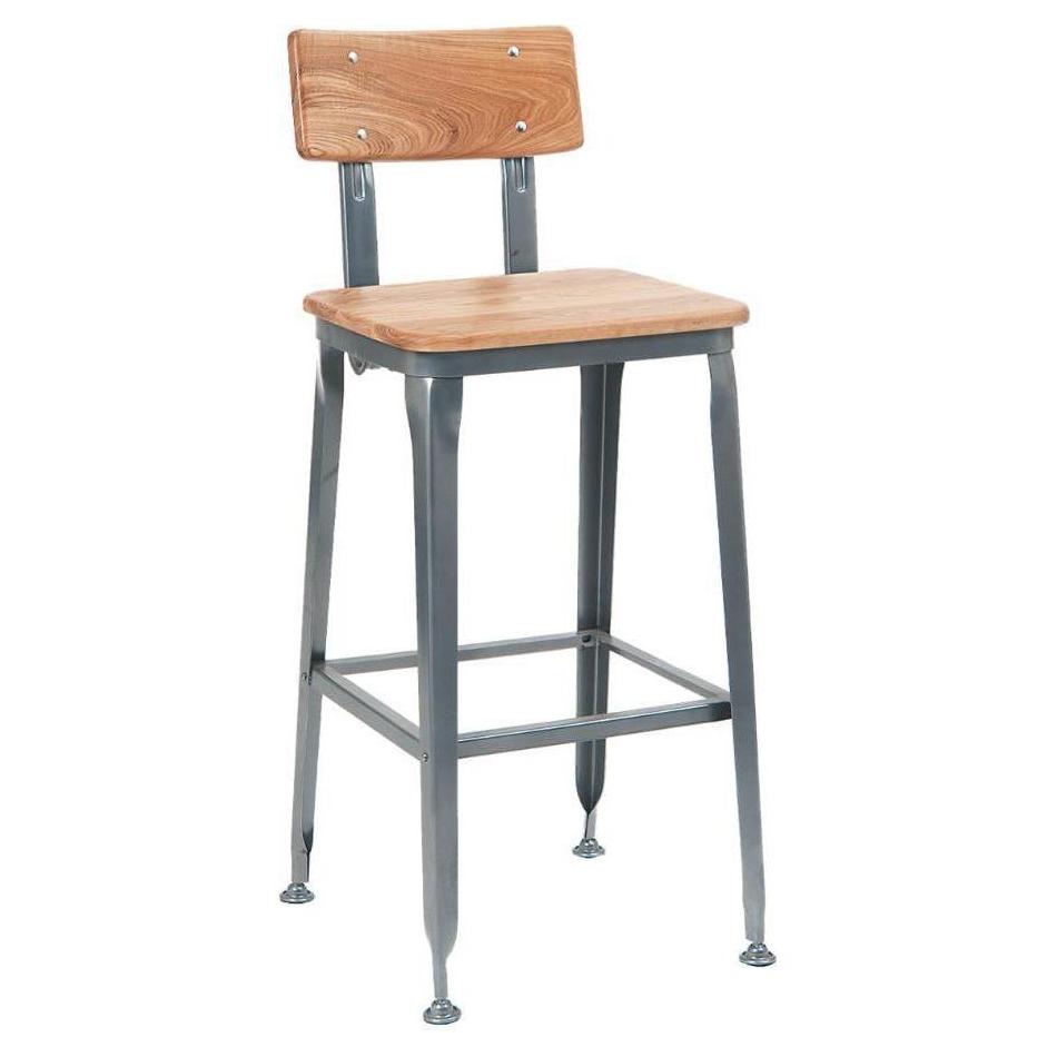 - Octane Indoor Distressed Steel Bar Stool With Elm Wood Seat and Back