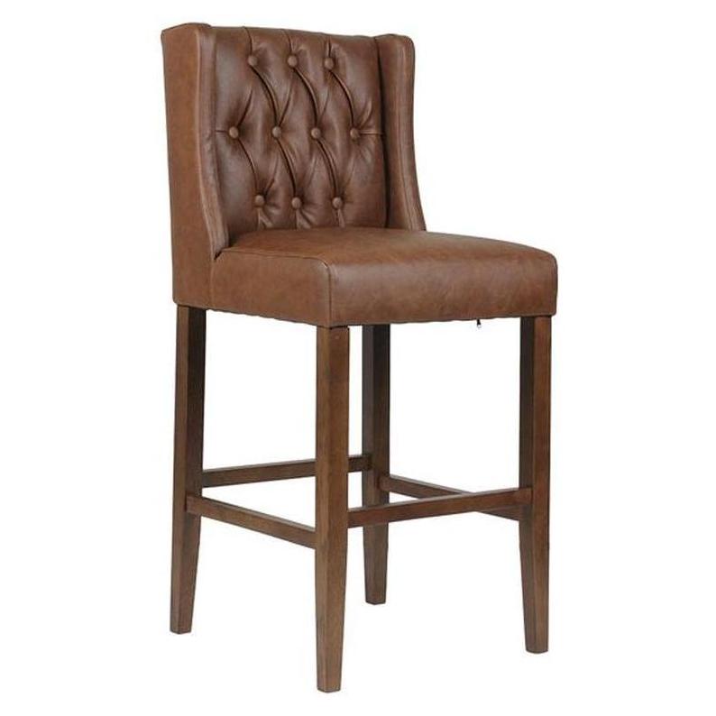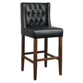 - Indoor Tufted Back Upholstered Oak Wood Bar Stool