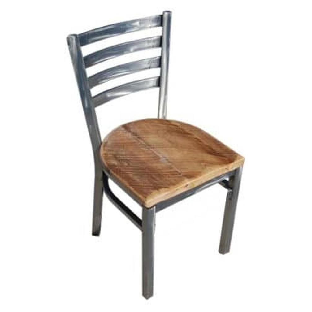 One of our very best sellers, these ladderback chairs are made from high-quality steel and reclaimed wood, and are finished with a nice clear coat to provide protection and durability. These classy industrial chairs make these a perfect match with any of our quality reclaimed wood table tops.