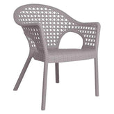 The Iris puts a modern twist on a traditional chair. It is a perfect pick for soaking up the sun by the pool or pulled up to the patio table for a starlit dinner. Crafted from environmentally friendly materials, this piece boasts a weaved construction that lends a touch of texture to your space, while a water and UV-resistant design makes it ideal for the outdoors. Designed with comfort in mind, these chairs have a large seat and comfortable armrests suitable for relaxing!