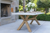 Ivory Composite and Antique Wash Outdoor Eucalyptus Dining Table 74" x 38"