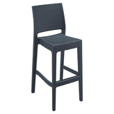This Jamaica Resin Wickerlook Barstool is a commercial grade bar stool designed to last and look great in your bar. This bar stool works great for modern design. This bar stool is a stacking bar stool and is made of highest-quality commercial grade resin designed for the budget price point. This bar stool comes in brown, dark gray and white color. This product is protected by our low price guarantee and our customer satisfaction return policy. Jamaica Wickerlook resin bar height chair (or Barstool) is made of durable weather resistant resin reinforced with glass fiber. Wickerlook resin isa natural looking un-woven one piece furniture technology. Wickerlook pation furnitue is made with open weave design that resembles traditional woven wicker furniture. Unlike any other woven furniture in the market - Wickerlook furniture will never unravel. No metal parts to rust, no moving parts to break. Made for commercial durability. Chairs are stackable. Perfect for heavy uses areas such as hotels and restaurants. UV Treated. Hose down for easy cleaning. Withstands outdoor temperatures in summer and winter. |