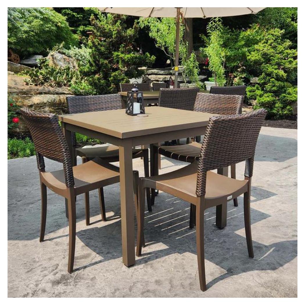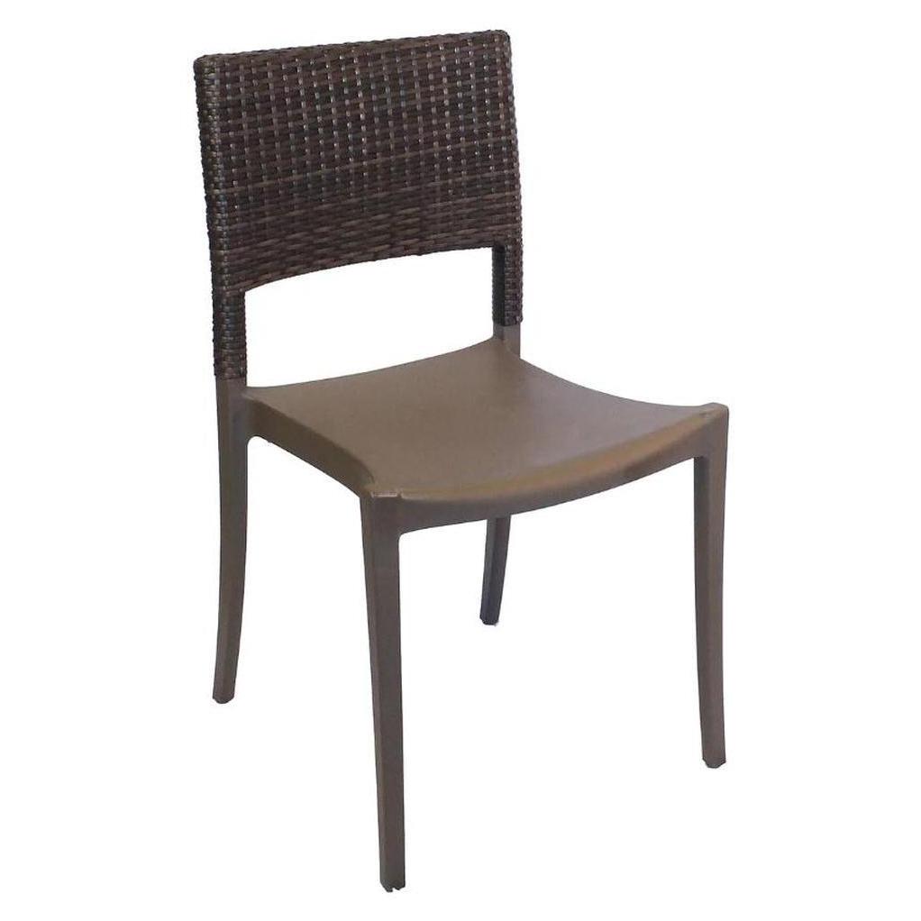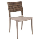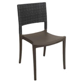 Classic contemporary design blends wicker with resin for strength, style and comfort. The Java Stacking Sidechair is a unique design that combines the beauty of an ergonomic wicker backrest with the durable functionality of fiberglass reinforced resin.