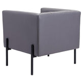 | The Jess Chair has mid century modern urban lines and looks great in any space. With a heavy duty vinyl covering and a sturdy steel frame, this chair fits in any dining room, home office, or even as a bedroom accent chair. The legs are finished in a matte black coating that is durable for hospitality use. | |
