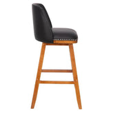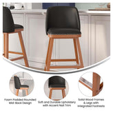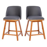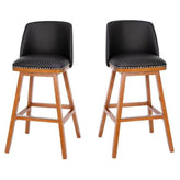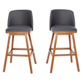 Julia Set of 2 LeatherSoft Upholstered Bar Stools with Silver Nailhead Trim and Walnut Finish