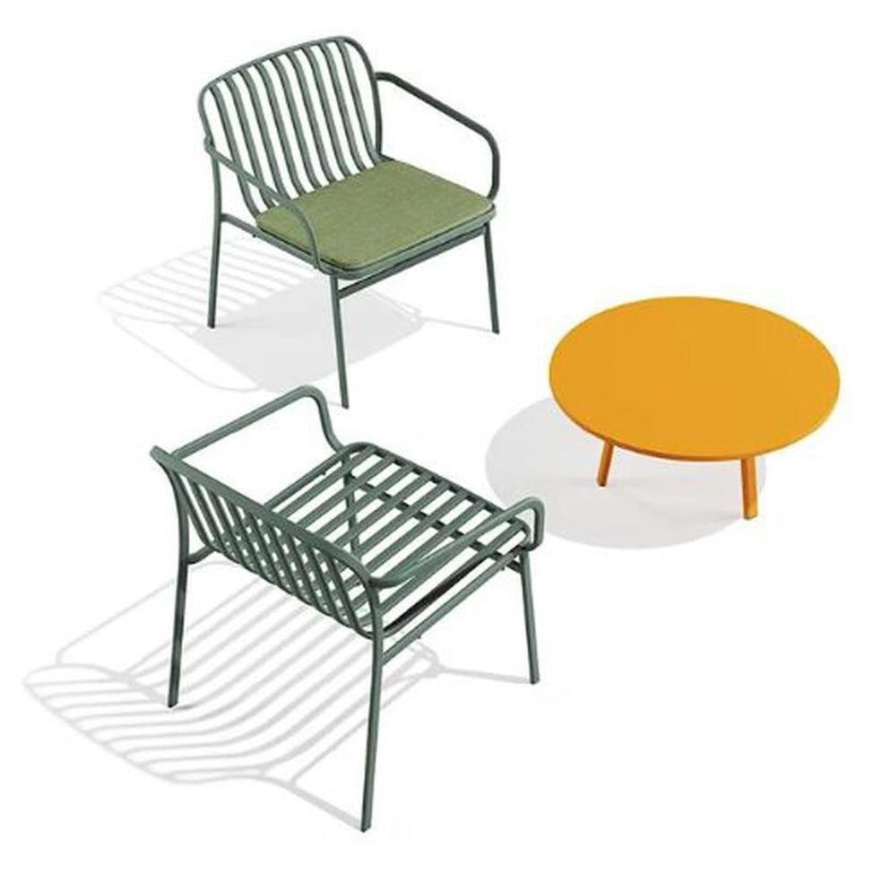 Industrial production and craftsmanship are combined in Denis Barbiero’s Kano collection. The chairs and small armchairs are stackable, the sofas and dorm-use are made of tubular steel, creating a beautiful alternation of full and empty spaces, strength and lightness. The tables have different tops, including an elegant Iroko version. The collection colors can be mixed to create customized compositions using the cushions and mats chromatic effects.