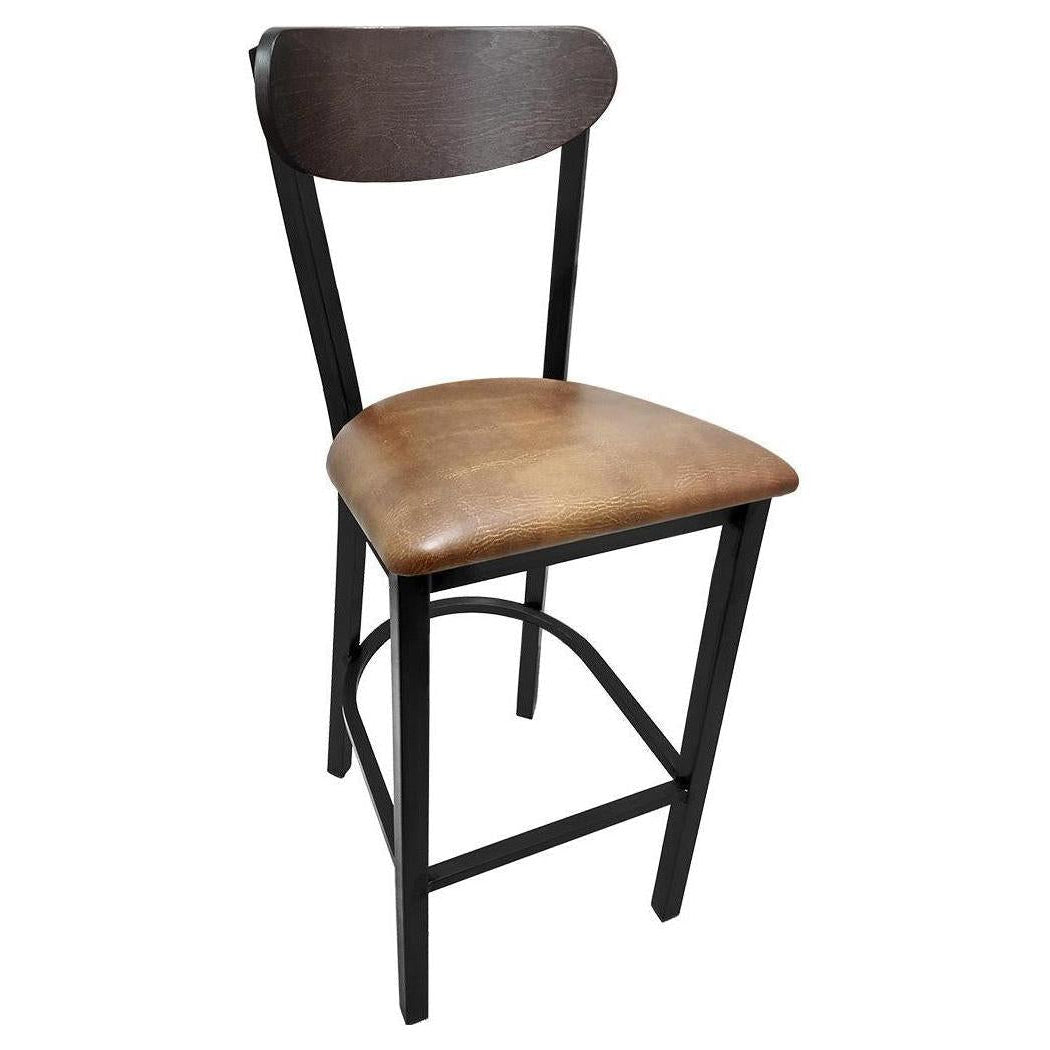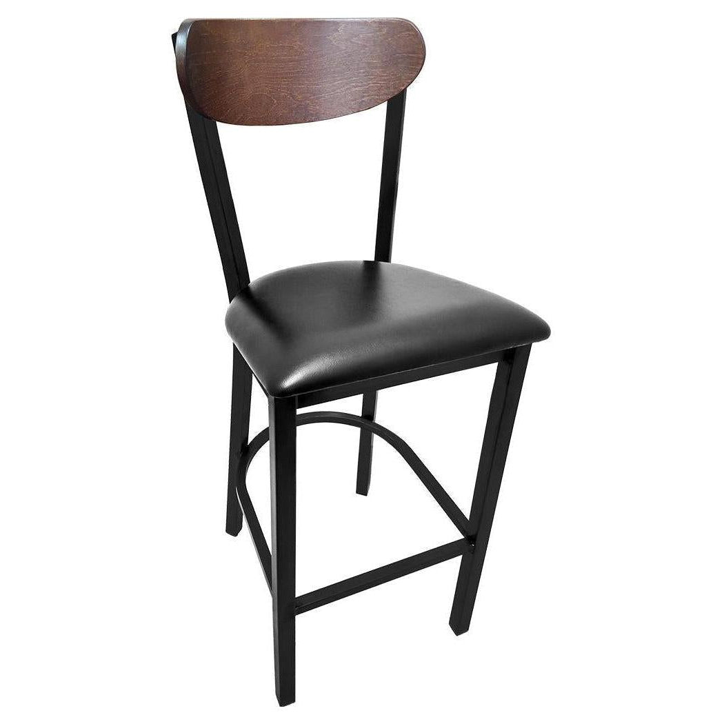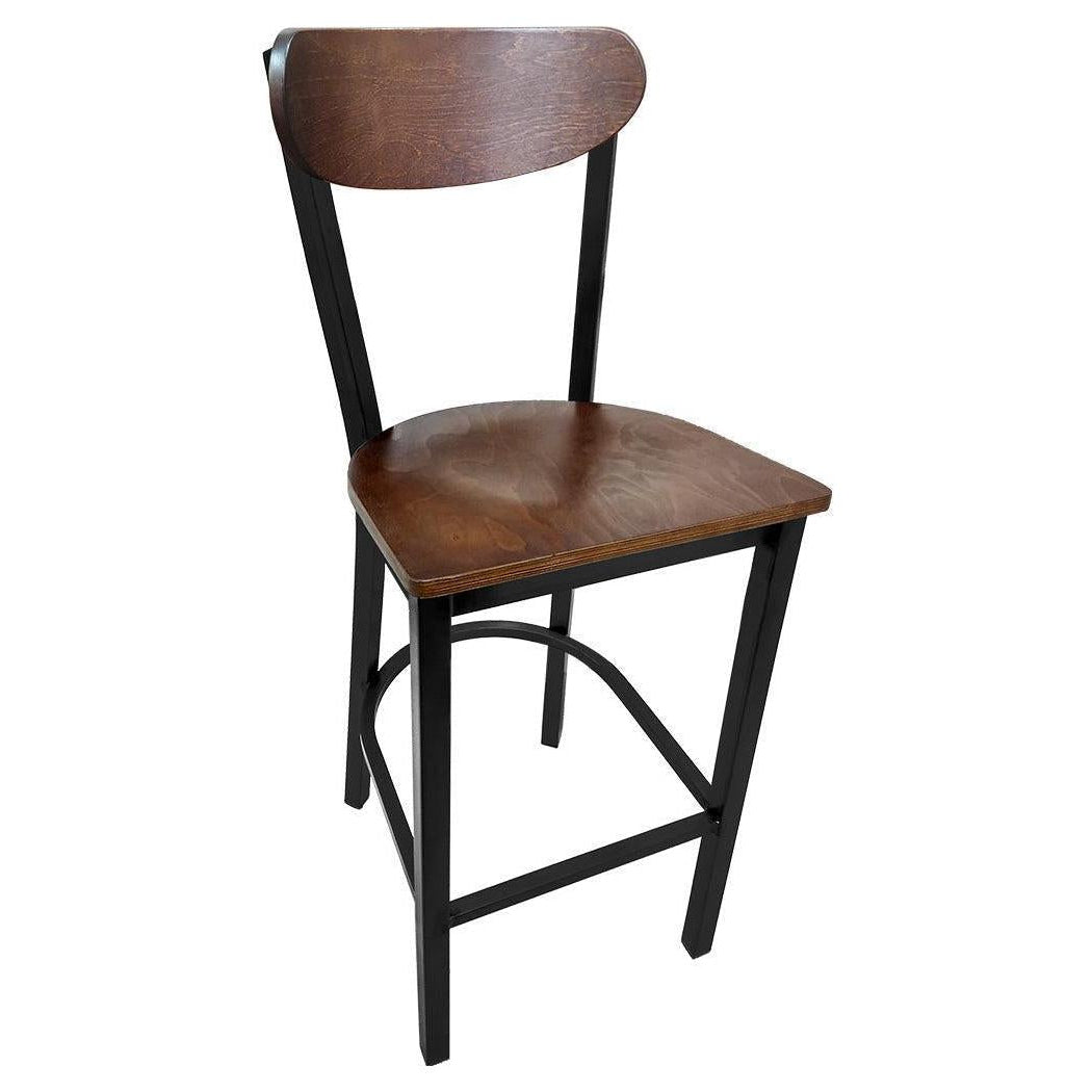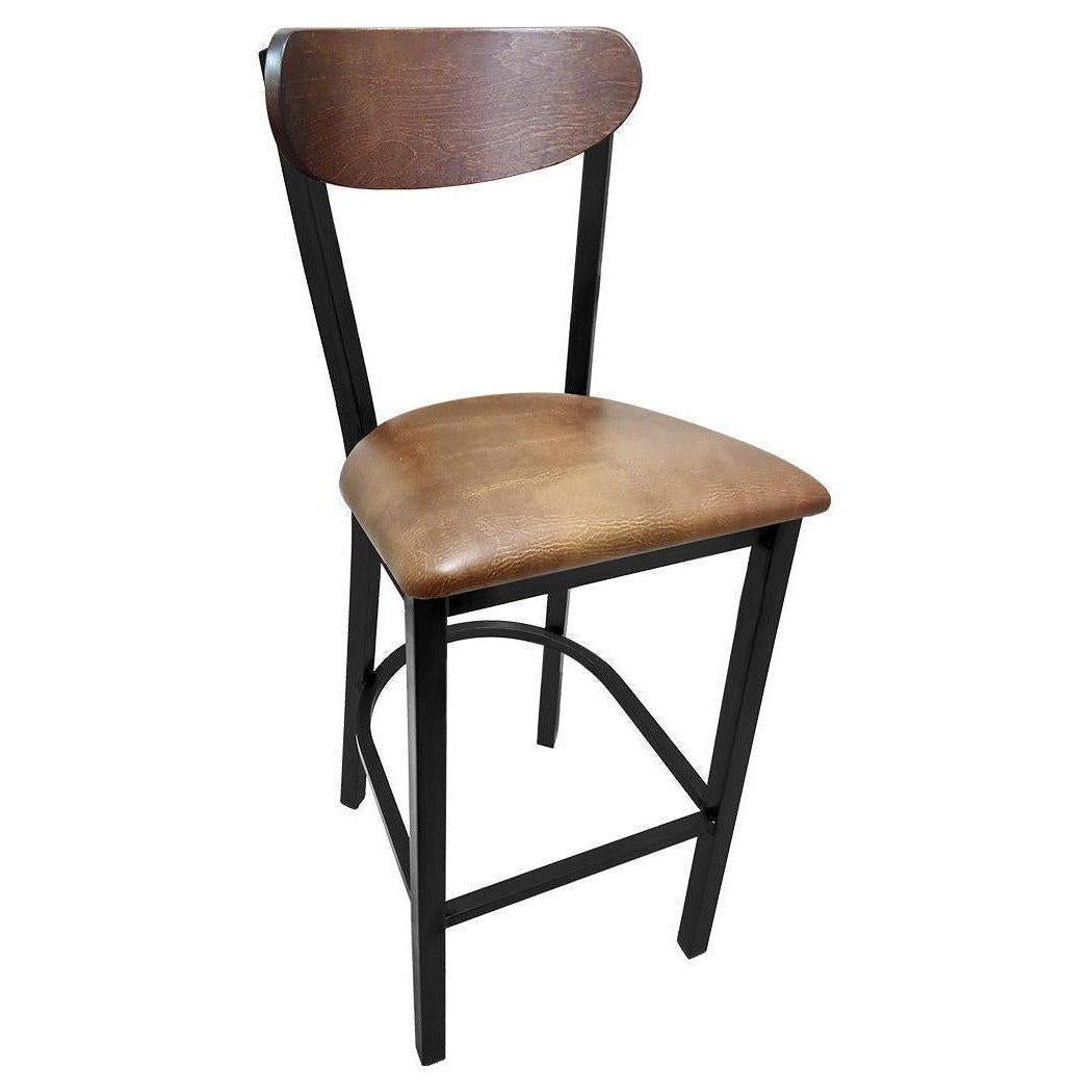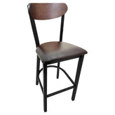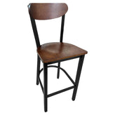 - Kidney Wood Back Bar Stool with Black Metal Frame