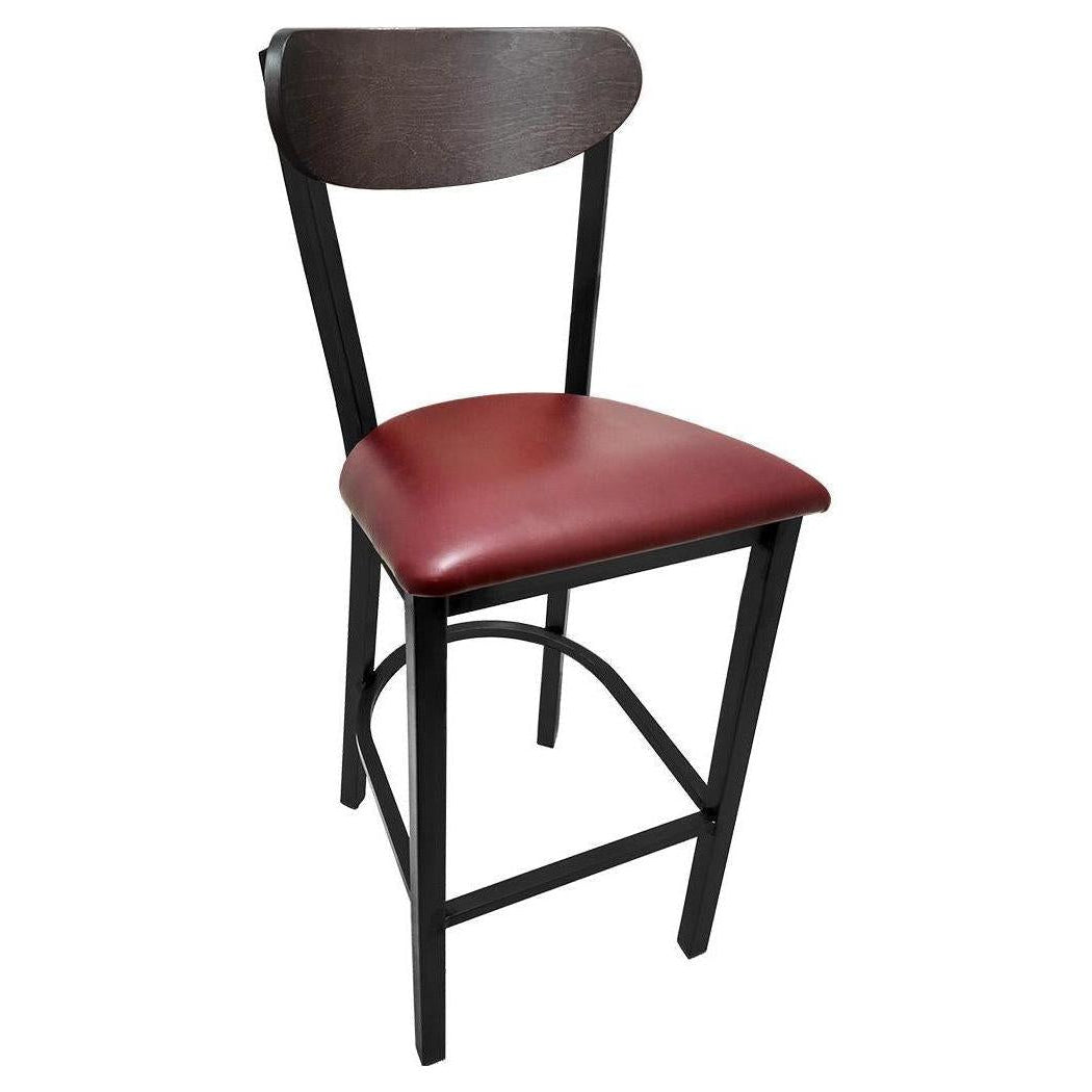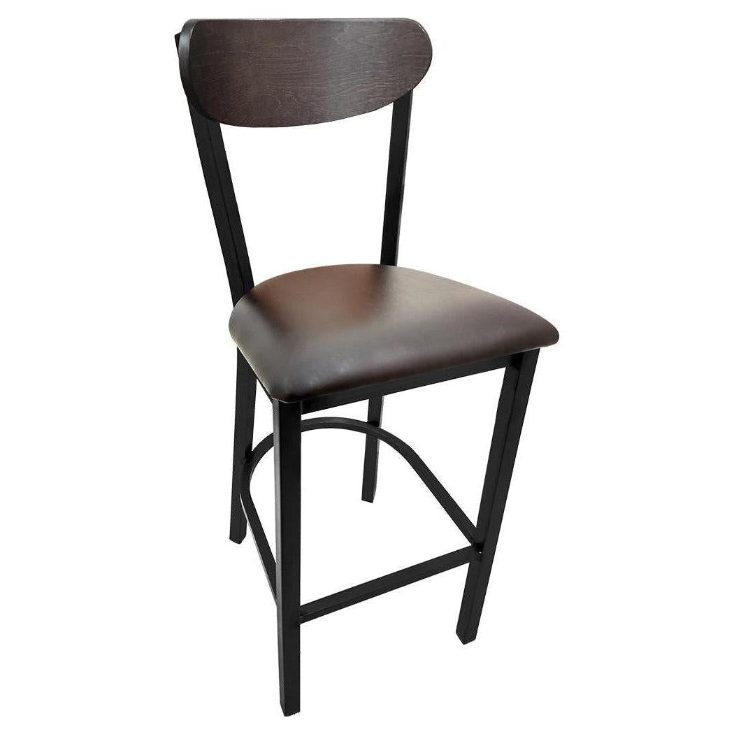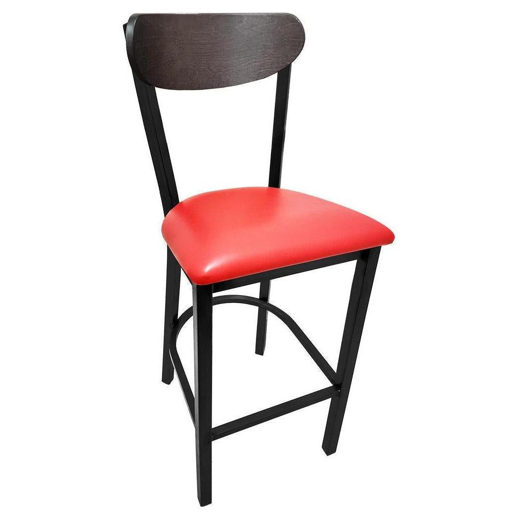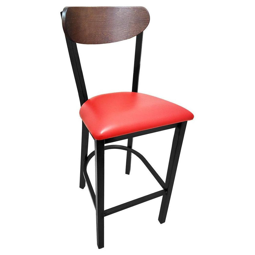- Kidney Wood Back Bar Stool with Black Metal Frame