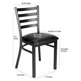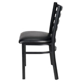 Ladder Back Restaurant Chair with Black Metal Frame and Black Vinyl Seat