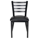 - Ladder Back Restaurant Chair with Black Metal Frame and Black Vinyl Seat