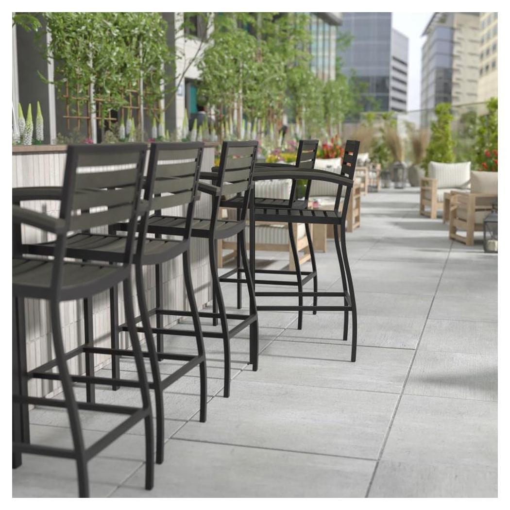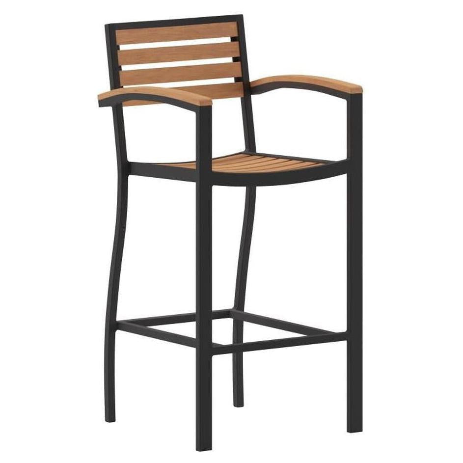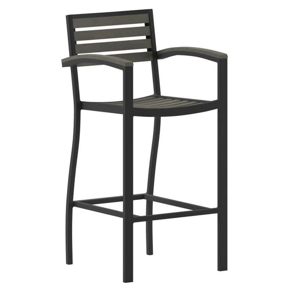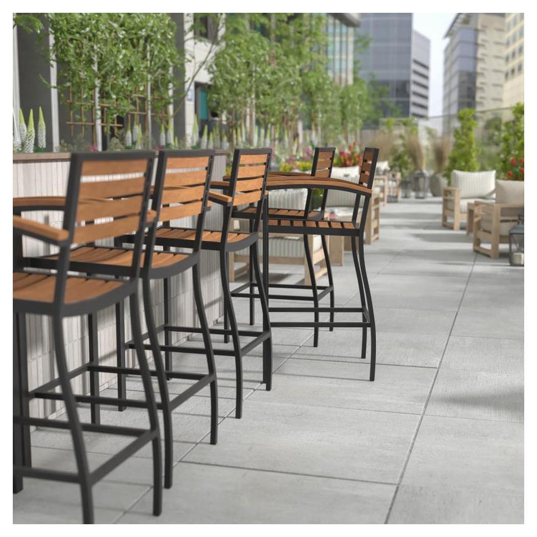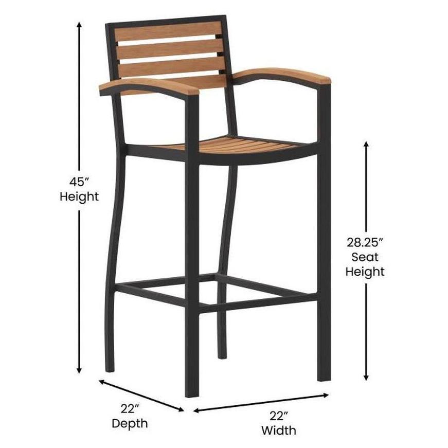 - Lark Outdoor Faux Wood Poly Resin Bar Height Stools with Arms