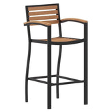 Lark Outdoor Faux Wood Poly Resin Bar Height Stools with Arms