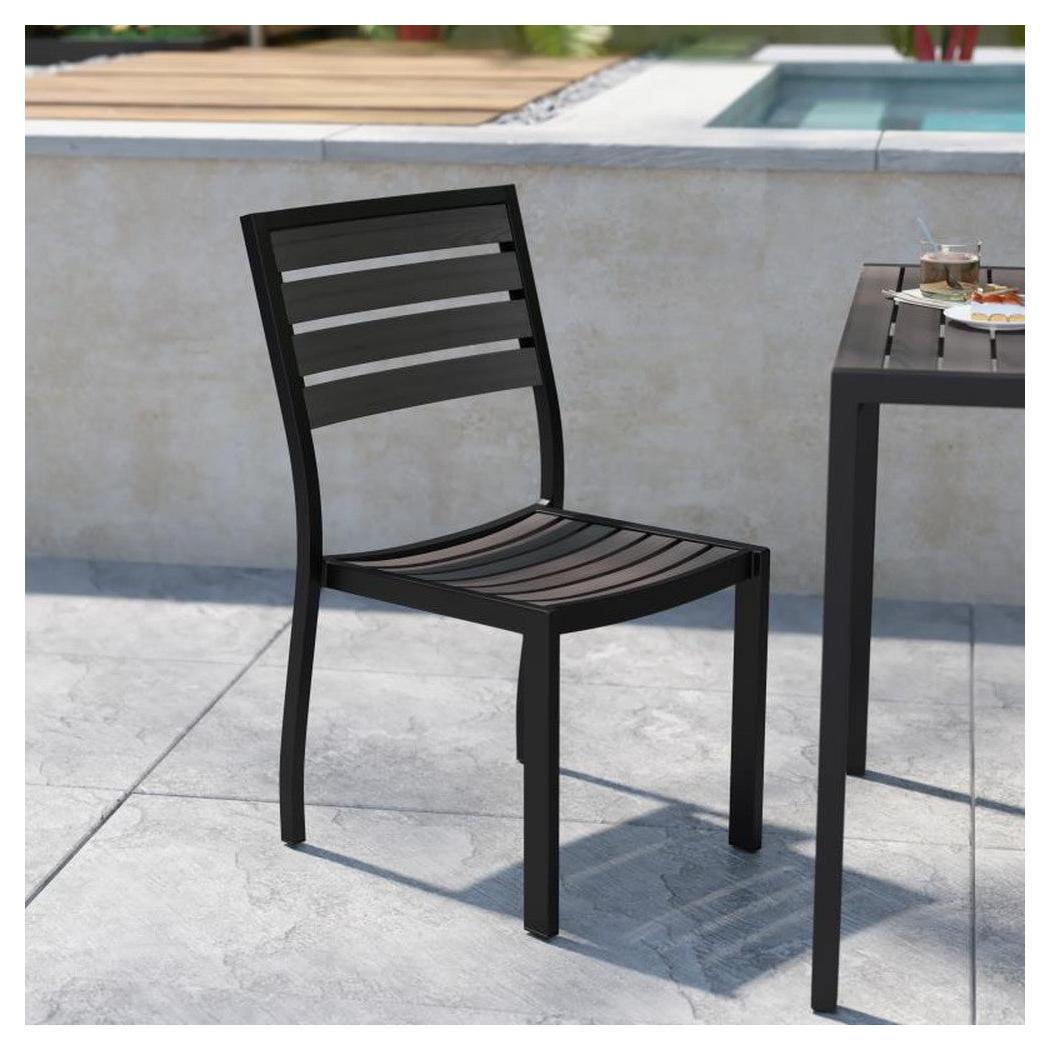 Lark Outdoor Side Chair with Faux Gray Teak Poly Slats