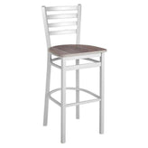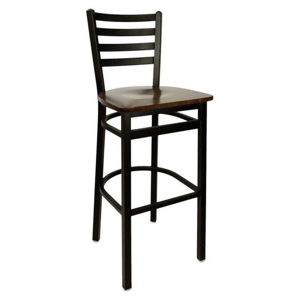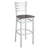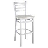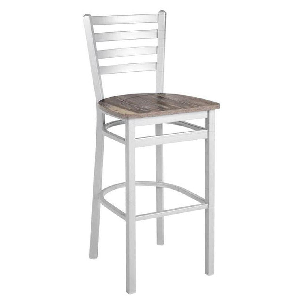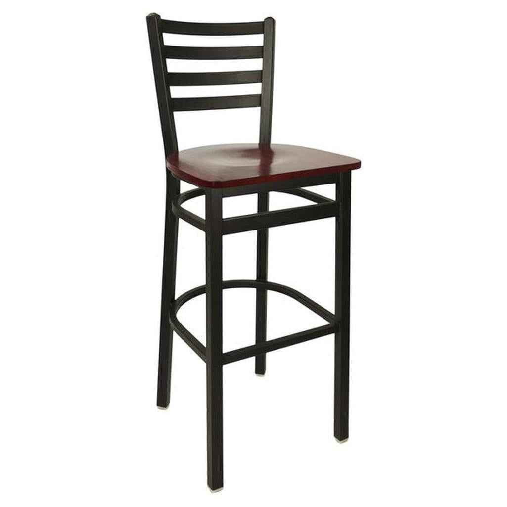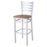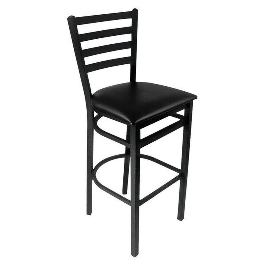 This modern Lima Ladder Back Bar Stool features a classic ladder design. It is available in sand black, silver mist powder coat finish. Upgraded upholstery options available. It comes with a one-year manufacturer's warranty and our best price guarantee.