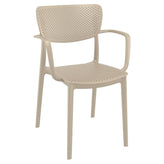 Resin outdoor dining set with 6 armchairs and one extandable table. Comfortable seat and back with modern pinhole see thru design. Super sturdy commercial strength. Made from commercial grade resin with gas injection molded legs. 100% recyclable polypropylene construction. Table practically extends from 39" to 55" for accomodating more guests. Chairs are stackable. UV resistant. Easy cleaning. Maintenance Free. High quality commercial grade resin furniture - featuring refined designs, that are weatherproof, comfortable, and functional. Preferred for heavy use areas, pool sides, patios, beach and balcony use. Items are resistant to UV, salt, weather, sun tanning oils. |