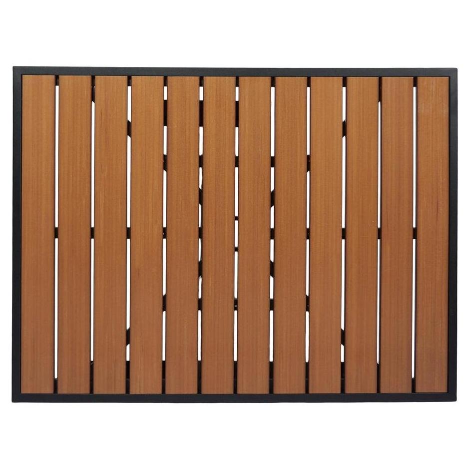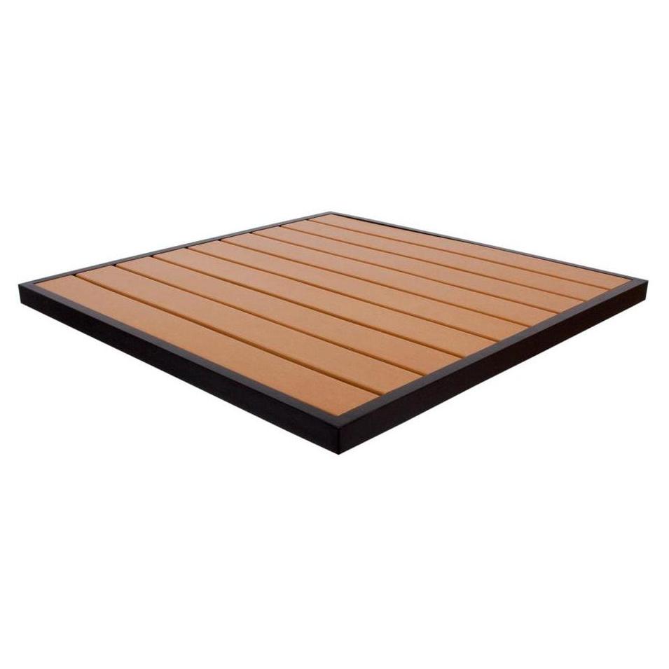 These sleek, outdoor Longport table tops feature a modern design. The frames are available in silver and black powder coat finishes. It has a slatted surface that allows rain to drain. Umbrella hole available on request & optional weighted umbrella base required (#UB50RD). Margate base compatible. It comes with a one-year manufacturer's warranty and our best price guarantee.