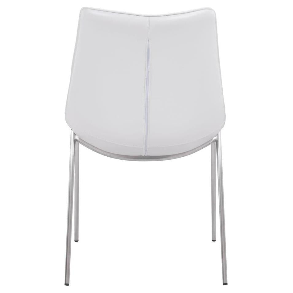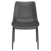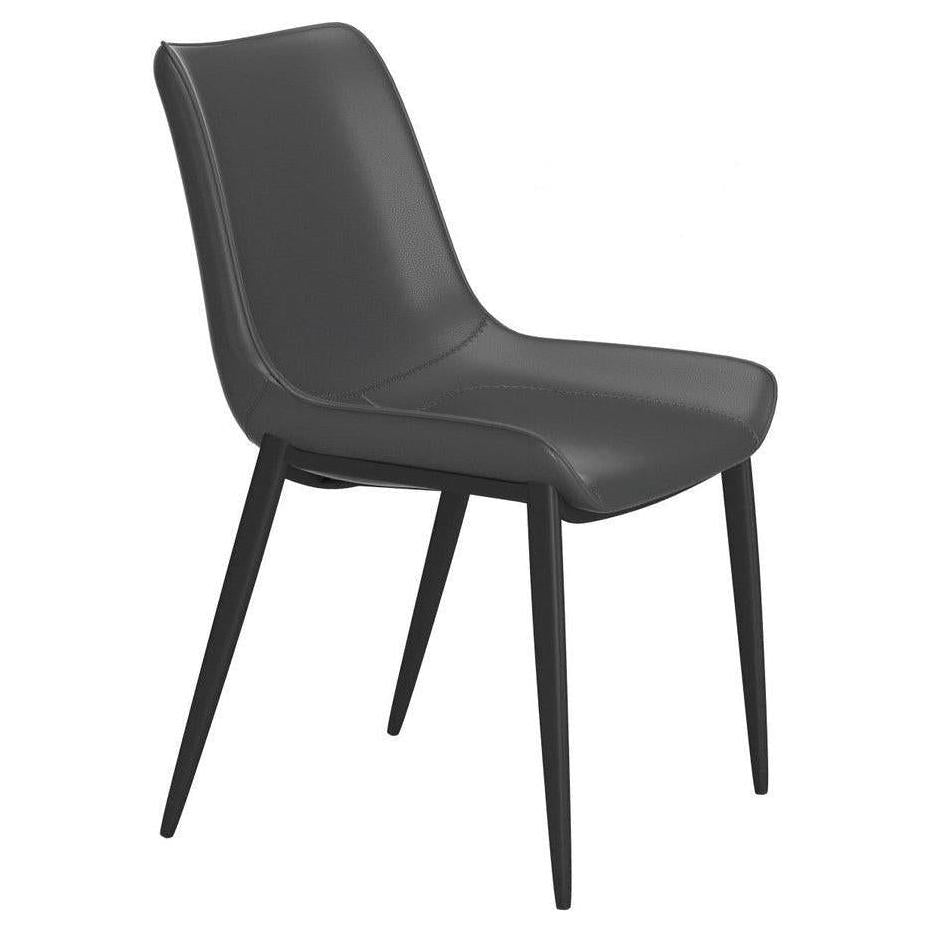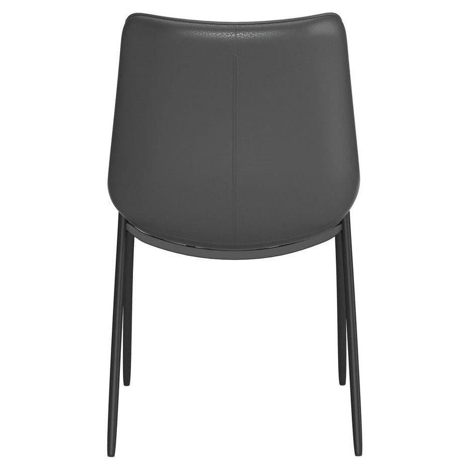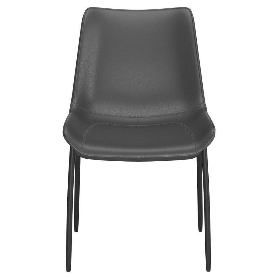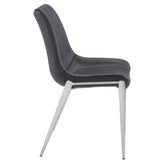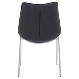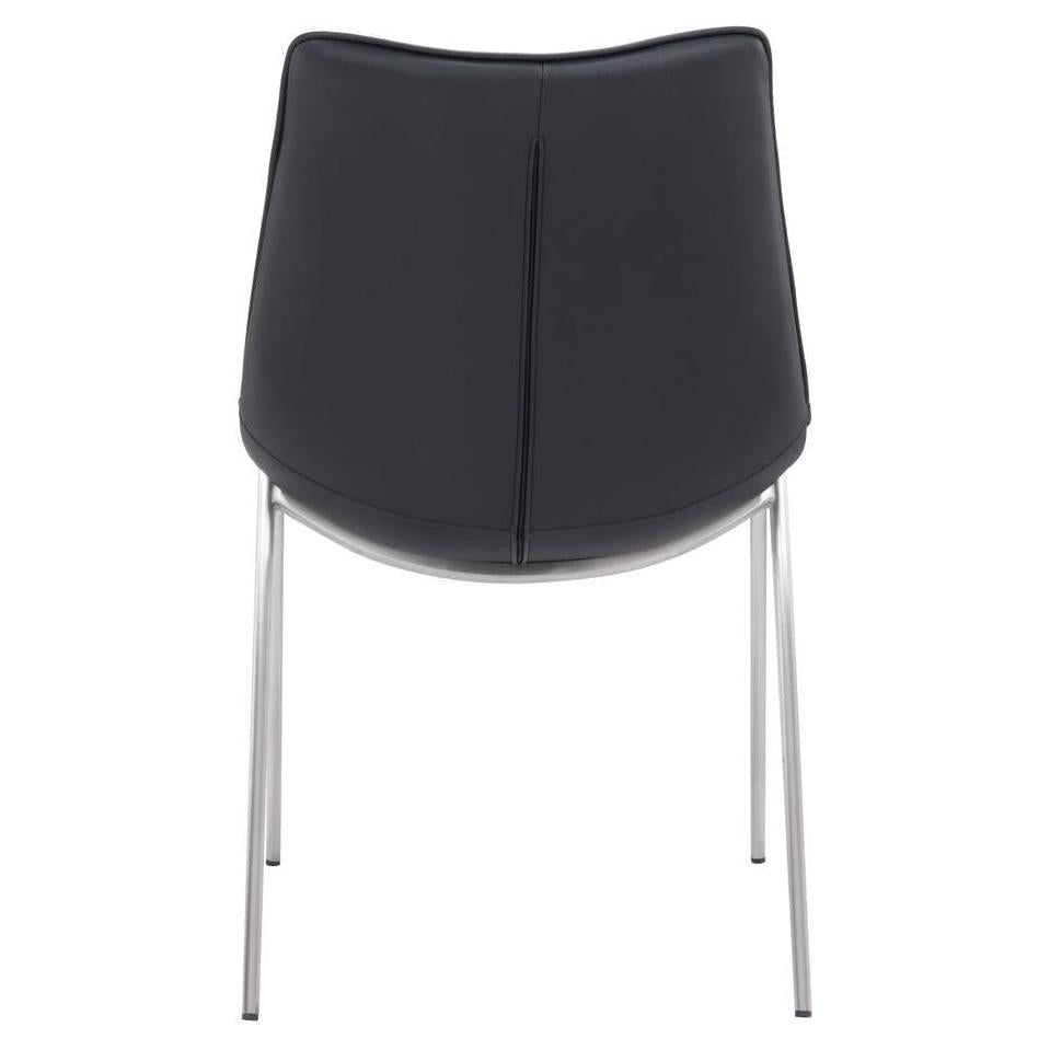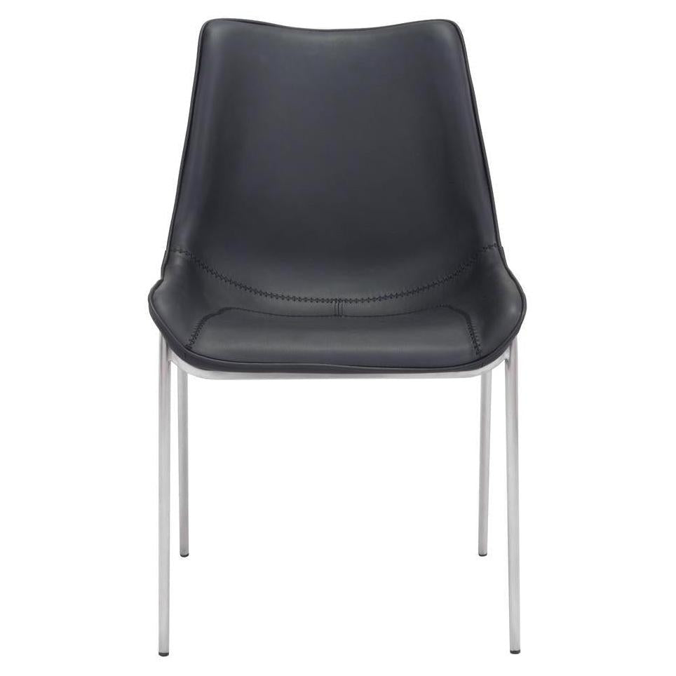 This armless contoured chair with its simple silhouette can dress up your dining space or keep things casual. Beautifully stitched design on black faux leather keeps an eye on the details. Comfortable enough to use as a desk chair. Brushed stainless steel legs are complete with protective plastic feet to keep your floors scratch-free. |