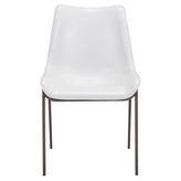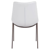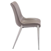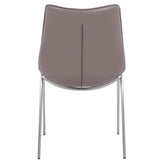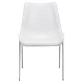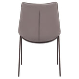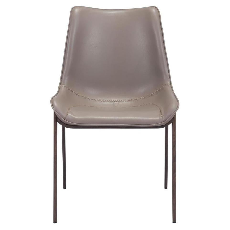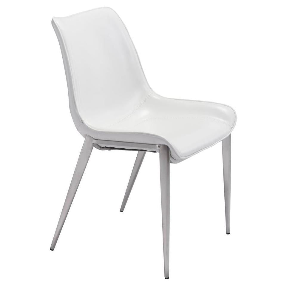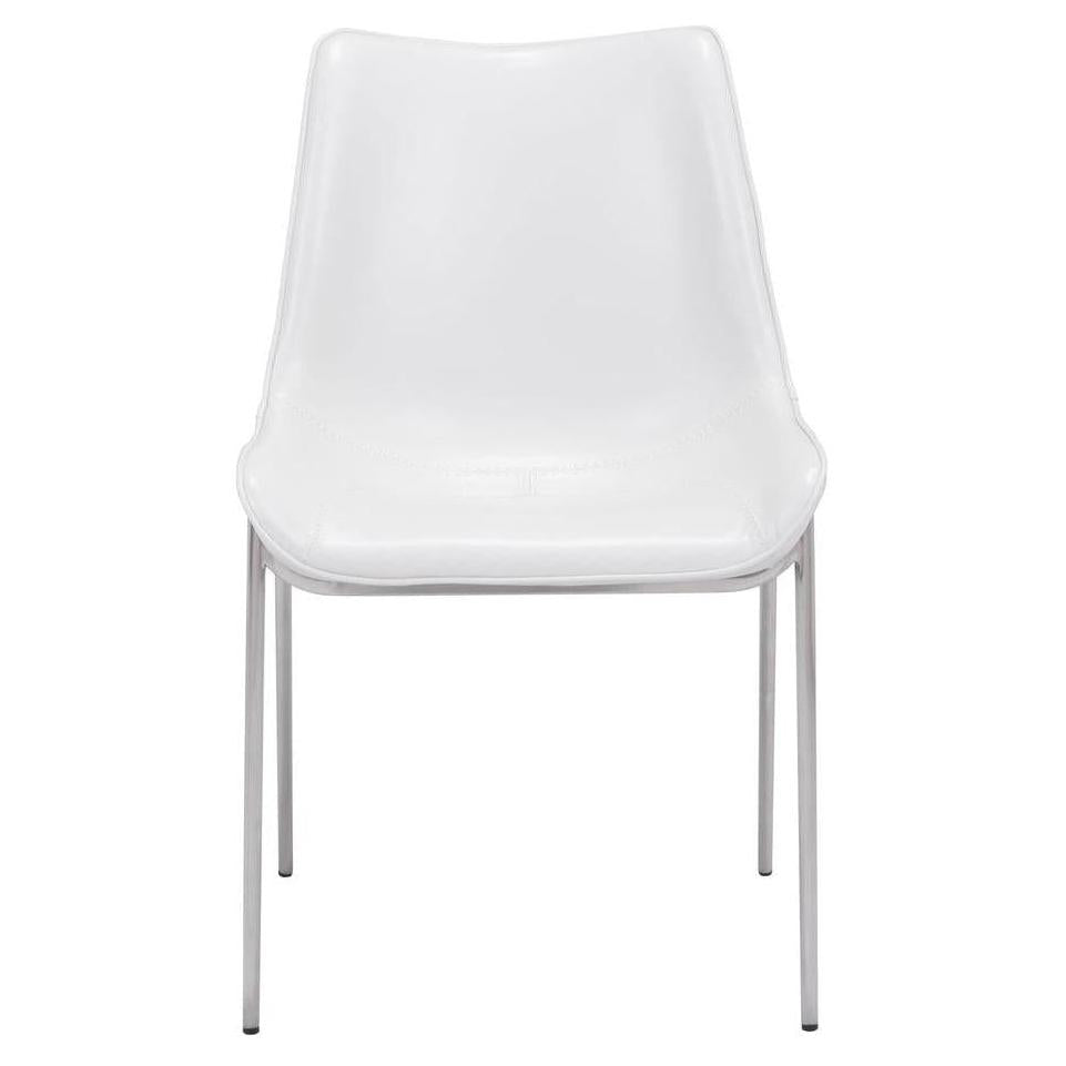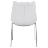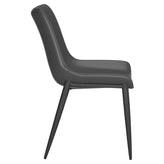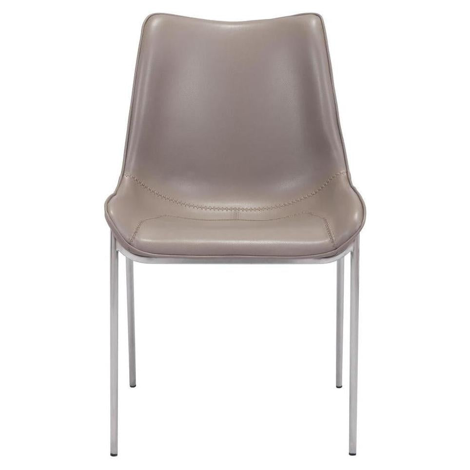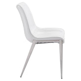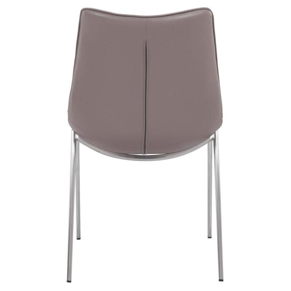 This armless contoured chair with its simple silhouette can dress up your dining space or keep things casual. Beautifully stitched design on black faux leather keeps an eye on the details. Comfortable enough to use as a desk chair. Brushed stainless steel legs are complete with protective plastic feet to keep your floors scratch-free. |