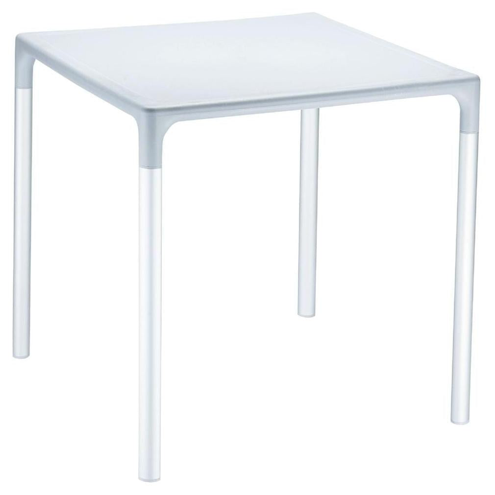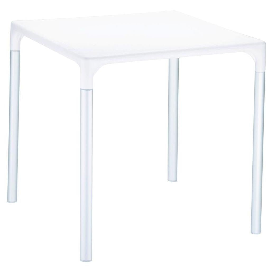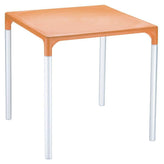Mango 28" square outdoor dining table with aluminum legs. Made from marine grade resin. Preferred by restaurants and hotels. Stackable. Easy cleaning. Resin is resistant to outdoors and harsh weather conditions. High quality commercial grade resin furniture - featuring refined designs, that are weatherproof, comfortable, and functional. Preferred for heavy use areas, pool sides, patios, beach and balcony use. Items are resistant to UV, salt, weather, sun tanning oils. |