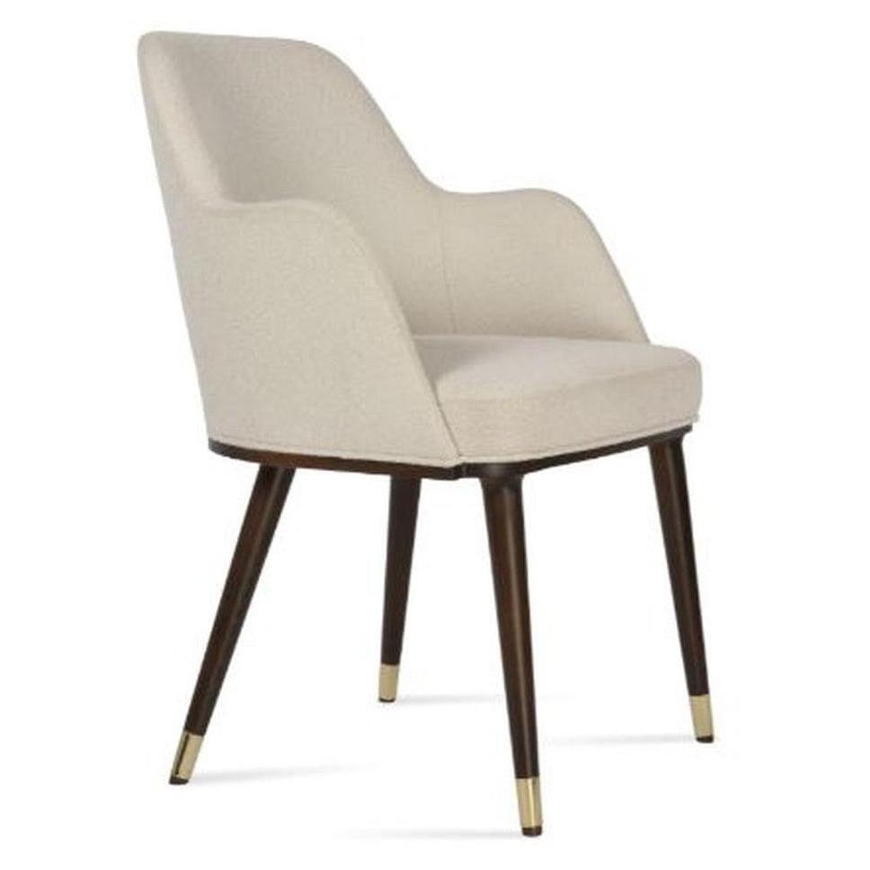 Marash Arm Wood is a contemporary chair with a comfortable upholstered seat and backrest on a solid walnut beech. The seat has a steel structure with “S” shape springs for extra flexibility and strength. This steel frame is molded by an injecting polyurethane foam. Marash Arm seat is upholstered with a removable velcro, enclosed leather, PPM, wool as well as Camira organic wool slip cover. Marash Arm Wood may be upholstered with variety of other colors as a special order with a minimum of quantity required. The chair is suitable for both residential and commercial use.