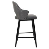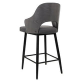 Marlow Black Metal Bar Stool with Dark Grey Upholstered Seat and Textured Back