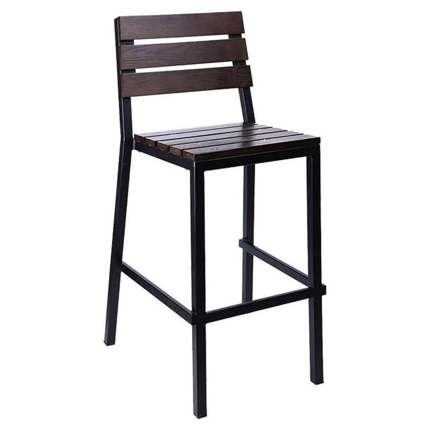 - Metal Bar Stool with Slatted Ashwood Seat and Back in Walnut Stain
