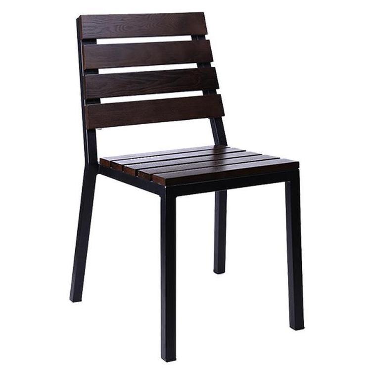 - Metal Chair with Slatted Ashwood Seat and Back in Walnut Stain