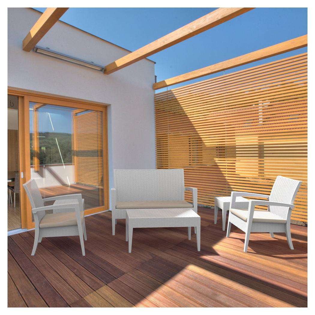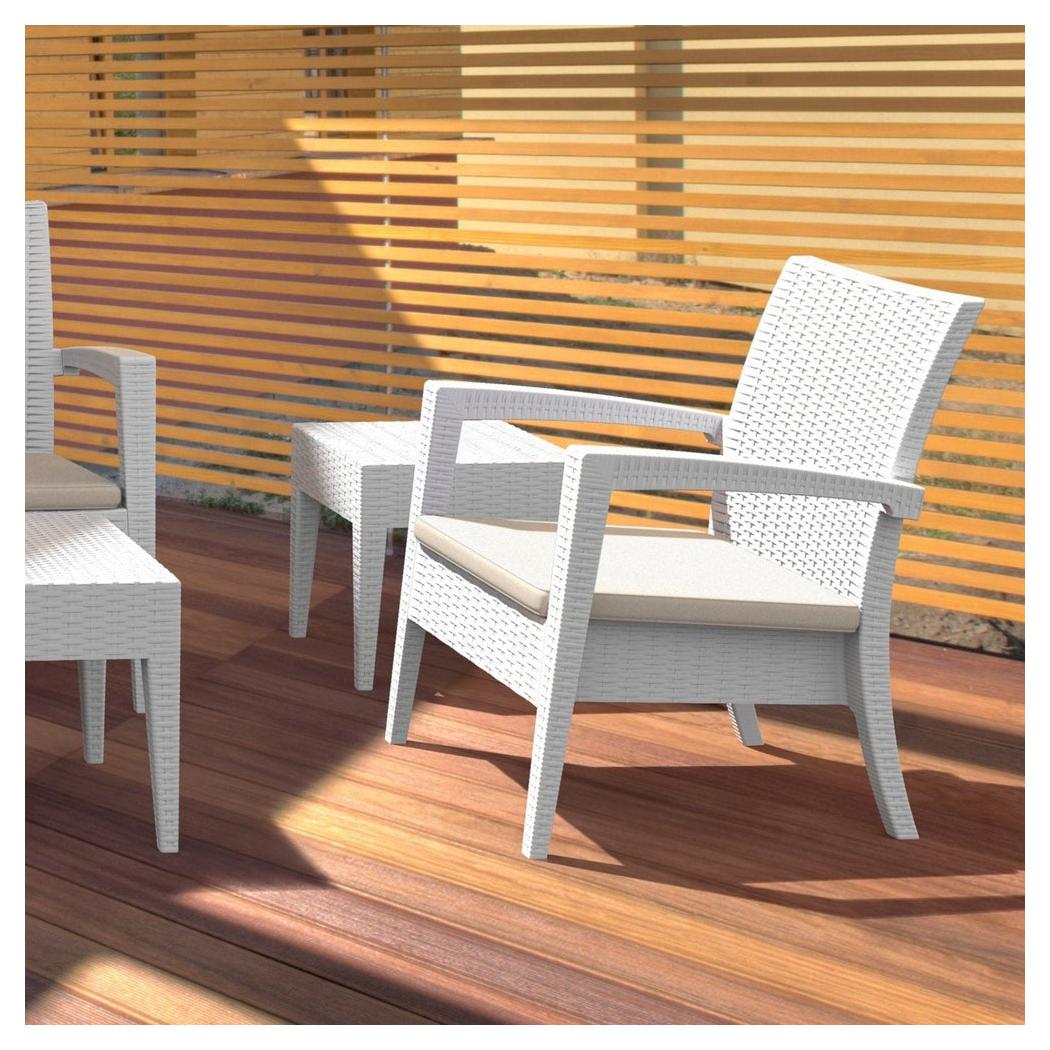 Miami Outdoor Resin Club Chair White with Sunbrella Natural Cushion