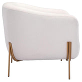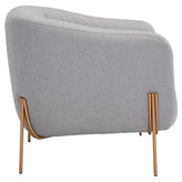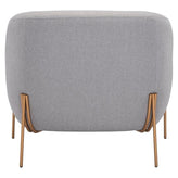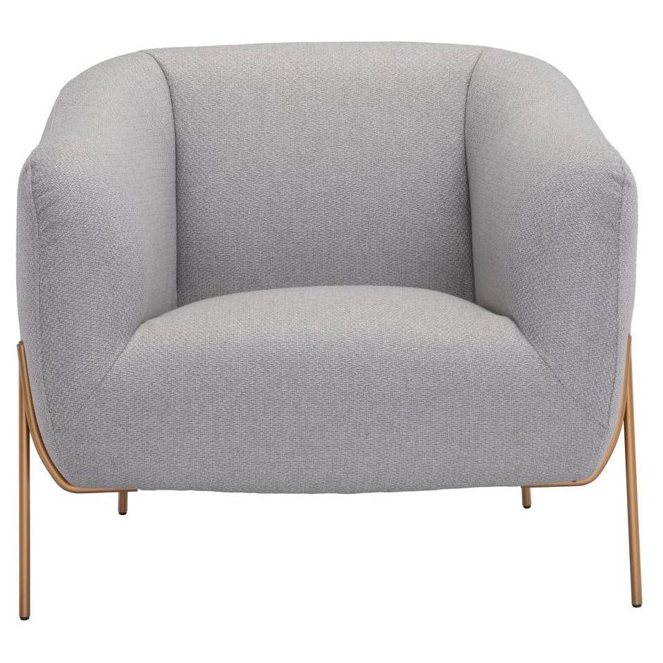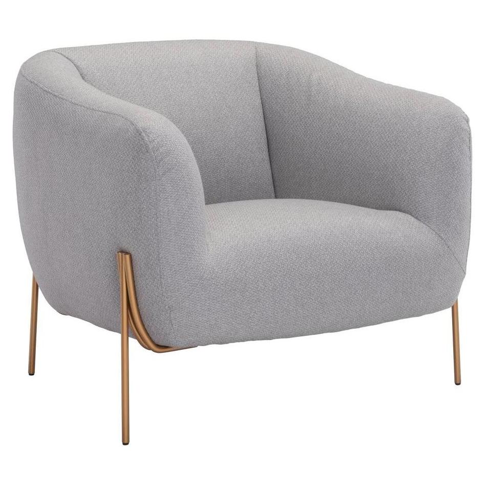 | Poised for comfort, this cushy lounge chair is generous in scale and totally chic. Its lux gold frame keeps a low profile to highlight the mod vibe of the chair when placed in your living room or bedroom. Wrapped in soft gray fabric, it is the perfect compliment for your modern space. | |